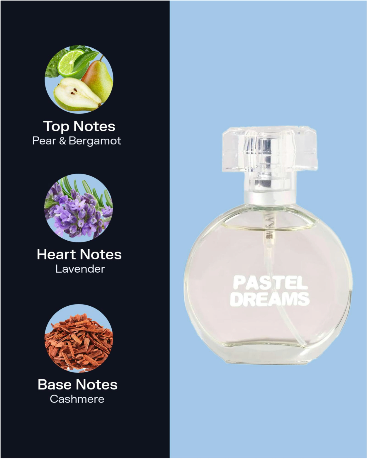 Pastel Dreams Eau de Toilette Spray, our version of Ariana Grande Cloud*, is a sweet and creamy gourmand floral. Pear, bergamot and lavender top notes over a sensual musk & cashmere base.